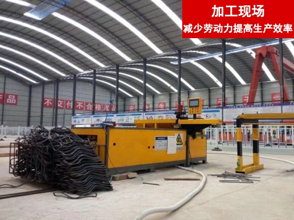 格柵拱架作為隧道拱架的一種常用于公路鐵路隧道,礦山巷道施工的初期支護(hù)中,而 8 字筋是格柵拱架中的重要組成,其形狀復(fù)雜, 數(shù)量巨大,加工難度大,工人勞動強(qiáng)度高。濟(jì)寧市旭輝數(shù)控機(jī)械有限公司一直致力于數(shù)控鋼筋彎箍機(jī)的研制,我們針對 8 字筋的特殊形 狀和要求,在原基礎(chǔ)上加以改進(jìn),讓原本復(fù)雜的加工變得更加簡單、標(biāo)準(zhǔn)、節(jié)能。我們深入加工現(xiàn)場了解傳統(tǒng)加工的諸多難處, 在設(shè)計當(dāng)中加入現(xiàn)代化制造的先進(jìn)理念和元素,那就是精益化生產(chǎn), 各個工序的產(chǎn)品沒有堆積(不占地方),產(chǎn)品不需要人力運(yùn)轉(zhuǎn)運(yùn)輸, 讓我們生產(chǎn)的產(chǎn)品意義上的流動起來,讓我們的生產(chǎn)現(xiàn)場空間更好的利用,整個生產(chǎn)線整潔和諧,企業(yè)形象得到根本上的改善。